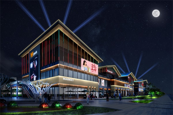 商业街的亮化也必须考虑当地的夜间特征。要突出建筑特色,体现商业街特色。根据楼体自身建筑的特点,进行设计方案,使建筑在夜间充分发挥其优秀的形象,营造高档、大气、舒适的生活环境。