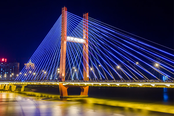 在深入了解桥梁周边环境后,桥梁泛光照明工程利用照明灯充分突出桥梁被照物在周边环境中的位置,与桥梁所属的周边环境造型艺术相融合。需要准确掌握桥梁景观照明所需的照明技术和照明专业知识,突出桥梁本身与城市夜景生活的关键环节。
