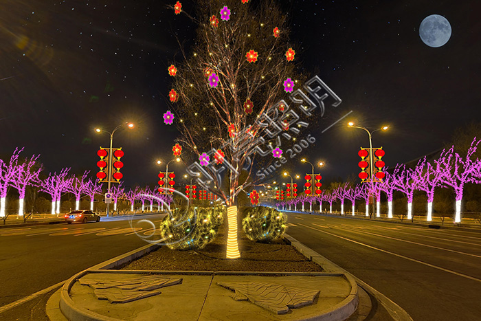 我们常用的树木亮化方式主要有聚光灯、投光灯、阴影和灯光装饰。